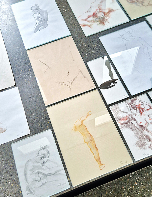 Aktskizzen im Schlössli Wohlen: gezeigt im Herbst 2023, in diversen Techniken. Die Posen jeweils nach Aktmodell in ihrer Spontanität erfasst und zu Papier gebracht.